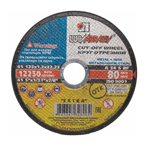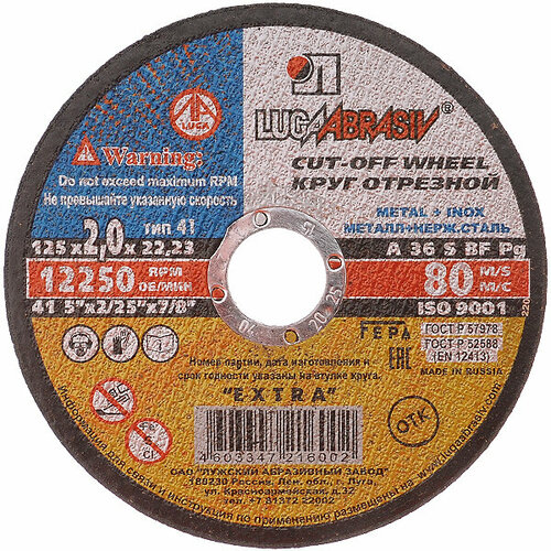Круг отрезной Луга 41 125x2x22.23 A 36 S BF 80 ex.(уп.25 шт) 3337