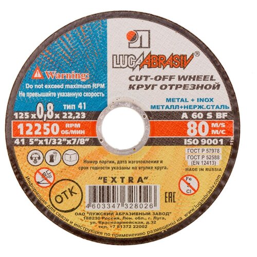 Круг отрезной Луга 41 125x0.8x22.23 A 60 S BF 80 мет.+нерж.(уп.25 шт) 15964