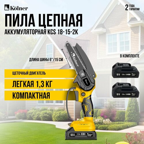 Пила цепная аккумуляторная Kolner KCS 18-15-2K шина 15см