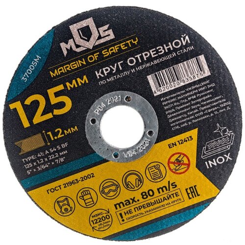 MOS Круг отрезной по металлу посадочный диаметр 22,2 мм, 125x1,2 мм 37005М