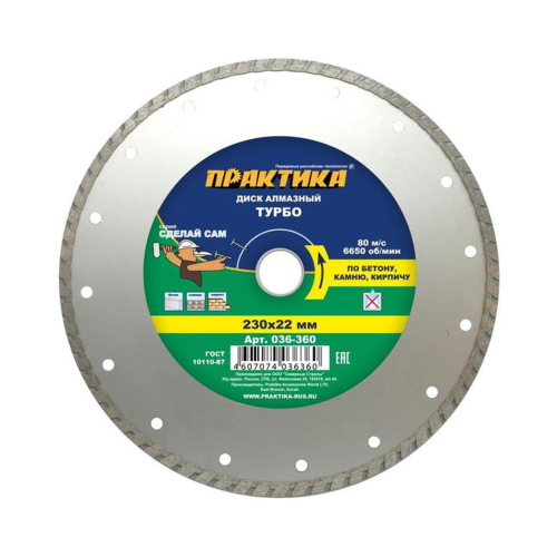 Диск алмазный турбированный "Сделай Сам" 230х22.2 мм ПРАКТИКА 036-360