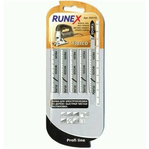 Пилка для электролобзика Runex T101B для дерева, пластика, ДСП 5 шт