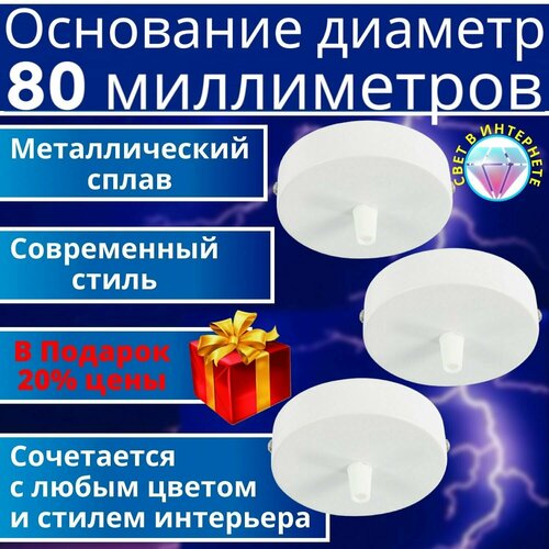 3 штуки основание 80мм для одиночного светильника -белое