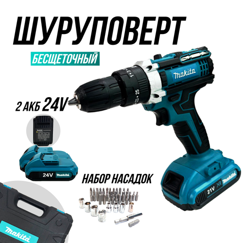 Дрель-шуруповерт ударная/с 2 аккумуляторами 26В/6Ah и комплектом инструментов в кейсе/биты + сверла в комплекте