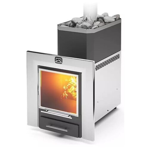 Дровяная банная печь Ермак 16 Премиум (Чугун) 16 кВт 41 см 75 см 64 см черный/серебристый