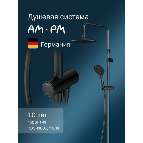 Душевая система с тропическим душем и смесителем AM.PM Suit поворотный излив, регулировка высоты штанги, черный матовый