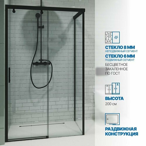Душевой уголок GWMPSLRC863B 75x150 см, цвет фурнитуры черный матовый, цвет стекла бесцветный, стекло закаленное 8 мм / 6 мм
