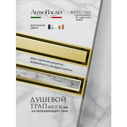 Цены на Душевой трап \ лоток \ слив под плитку AltroBagno 60 см, нержавеющая сталь, комбинированный затвор (сухой+мокрый), матовое золото золотистый в г. Москва
