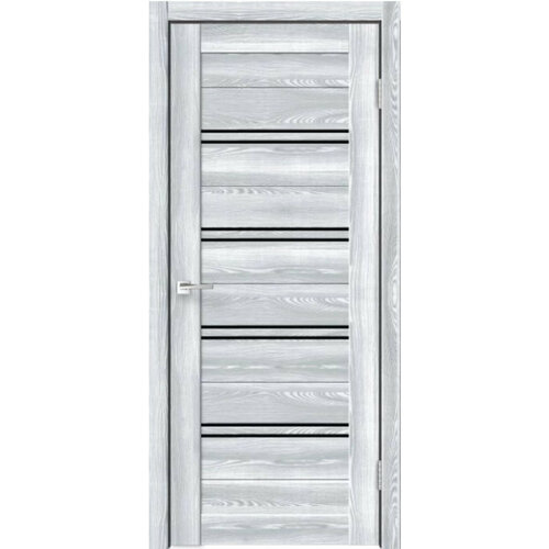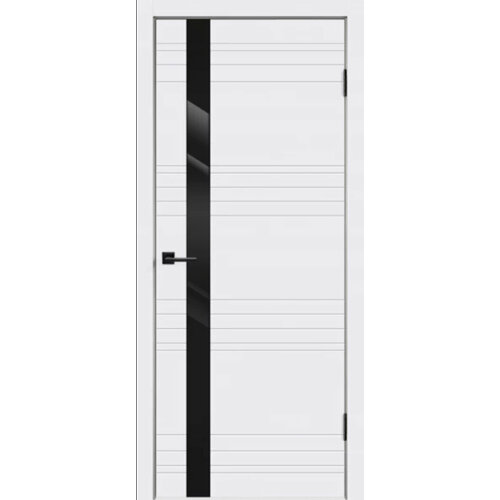 Дверь межкомнатная 900*2000 мм, Санторини, чёрное стекло, кромка ABS чёрная (комплект: дверное полотно -1 шт, коробка - 2,5 шт, наличники - 5 шт.)