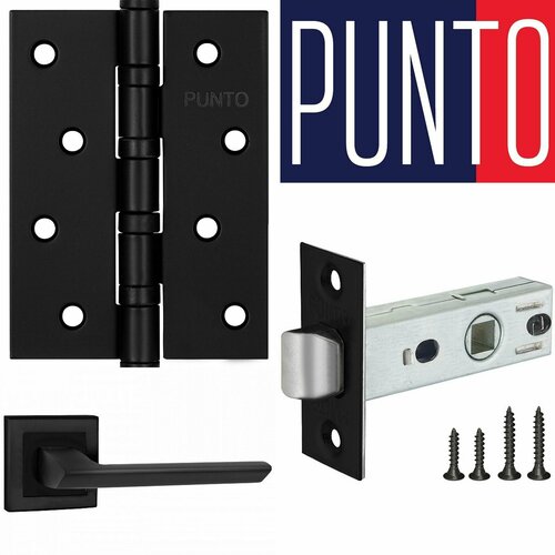Комплект дверных межкомнатных ручек PUNTO с защелкой и врезными универсальными петлями, черный