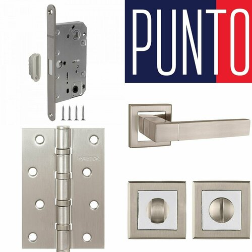 Комплект дверных межкомнатных ручек PUNTO с защелкой и врезными универсальными петлями, матовый никель/хром