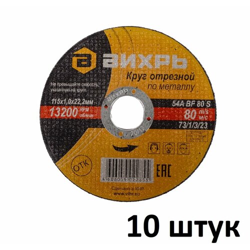 Круг отрезной (10шт) по металлу (115х22х1 мм) Вихрь