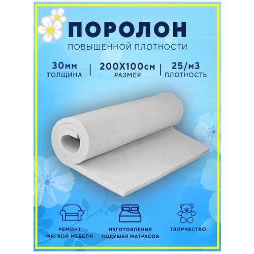 Поролон листовой мебельный 1х2м 25кг/м3 30мм