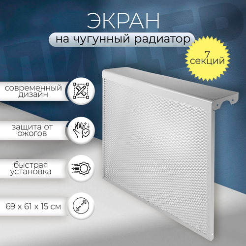 Лидер Экран на чугунный радиатор "Лидер", 690х610х150 мм, 7 секций, металлический, белый