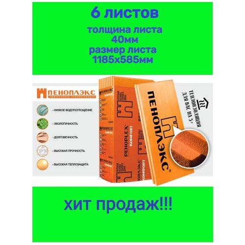 Утеплитель Пеноплэкс Комфорт 40 мм (экструдированный пенополистирол) 40х585х1185 (6 плит)