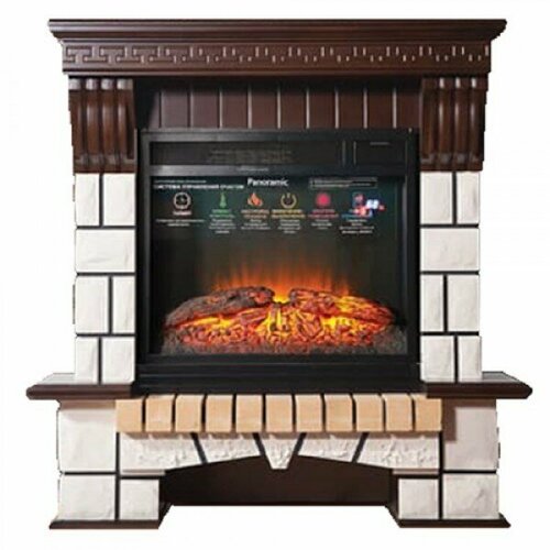 Данный каминокомплект станет отличным решением для оформления интерьера. Потрясающий эффект пламени и муляж дров, визуально увеличивающий восприятие огня, за счет зеркальной стенки. Звуковой эффект потрескивания горящих дров. Нагреватель с поддувом спрятан в козырьке очага, обогревая в холодную погоду. Портал задает тон камину. Модель хорошо впишется в небольшие комнаты, увеличивая пространство благодаря своей высоте и малой ширине.