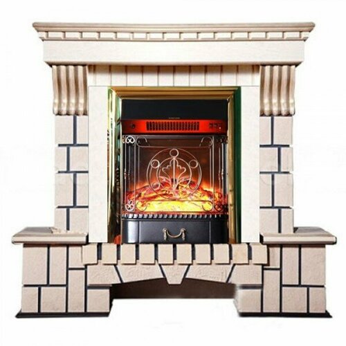 Электрокамин InterFlame Экстер с очагом Majestic FX M Black Бежевый с золотой патиной