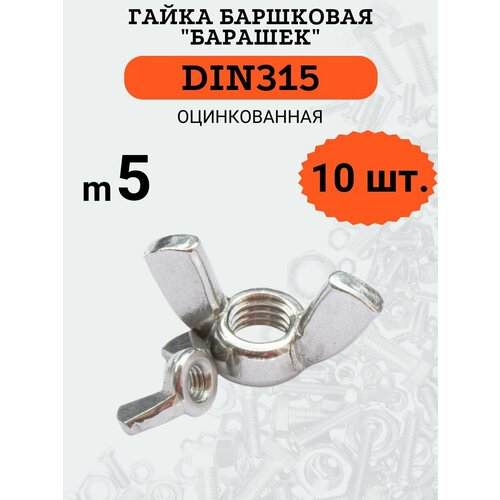 Гайка барашковая DIN315 M5 оцинкованная, 10 шт, 10 шт.