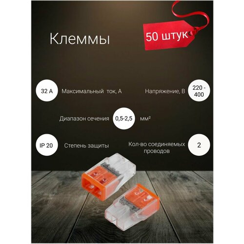 General GTER6-02 клемма строительно-монтажная, СМК, 2-проводная, 0.5-2.5 мм2, 50 шт. в комплекте