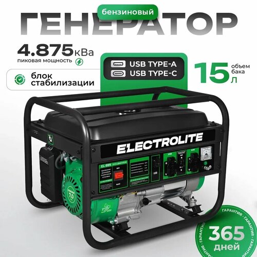 Генератор бензиновый / Бензогенератор / Портативная электростанция / Бензиновый генератор Electrolite 777 EL ( 4.875 кВа максимальная нагрузка , 220 В, 3 / 3.5 кВт, 7 л. с, ручной стартер )