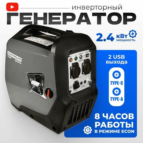Генератор бензиновый / Бензогенератор / Генератор инверторный Electrolite TI 2400 ( 2.4 кВт, 4х тактный, 3,7 л. с, ручной стартер, 23кг )