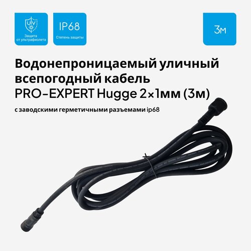 Кабель уличный с разъемами для светильников 2 х1мм, IP68, 3 м
