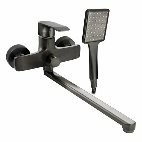 Смеситель в ванную с длинным изливом из латуни, Gfmark, цвет Титан (5170)
