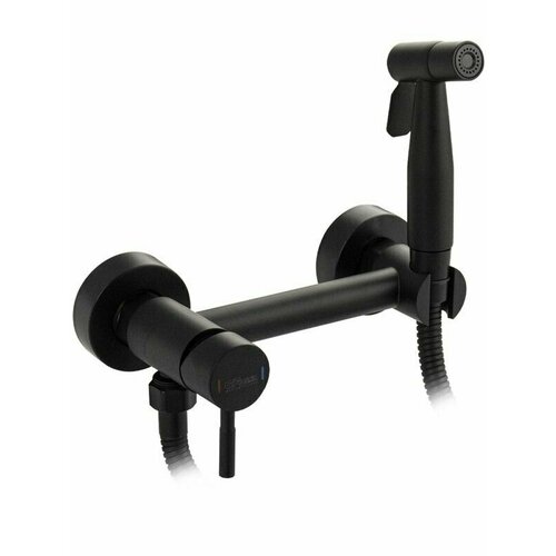 GFmark - Набор бидe гигиенический, чёрный смеситель для горячей и холодной воды + лейка - кнопка + шланг, из нержавеющей стали марки 304