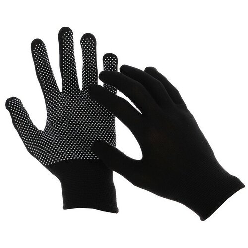 Перчатки, х/б, с нейлоновой нитью, с ПВХ точками, размер 9, чёрные, Greengo