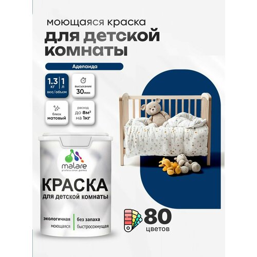 Краска акриловая (АК) Malare Краска Malare интерьерная для детской комнаты, для стен и обоев, для потолка, акриловая без запаха моющаяся матовая, аделаида (1л - 1.3кг) матовая аделаида 1 л 1.3 кг