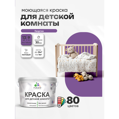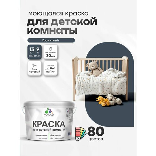 Краска акриловая (АК) Malare Краска Malare интерьерная для детской комнаты, для стен и обоев, для потолка, акриловая без запаха моющаяся матовая, агатовый (9л - 13кг) матовая агатовый 9 л 13 кг