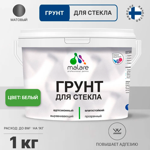 Грунт для стекла и скользких поверхностей Malare акриловый адгезионный выравнивающий, без запаха быстросохнущий, 1 кг.