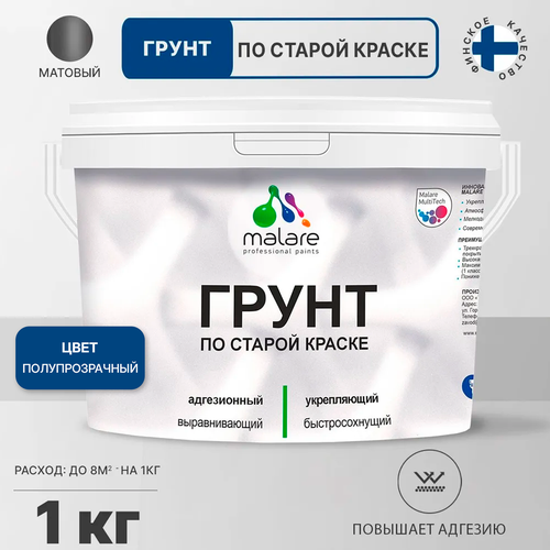 Грунт по старой краске Malare акриловый адгезионный универсальный, без запаха быстросохнущий, полупрозрачный, 1 кг.