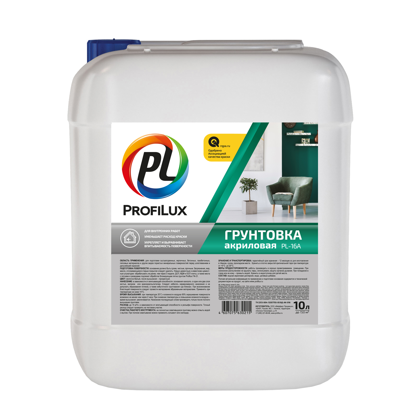 Грунт Profilux PL-16A акриловый, для внутренних работ, 10 л