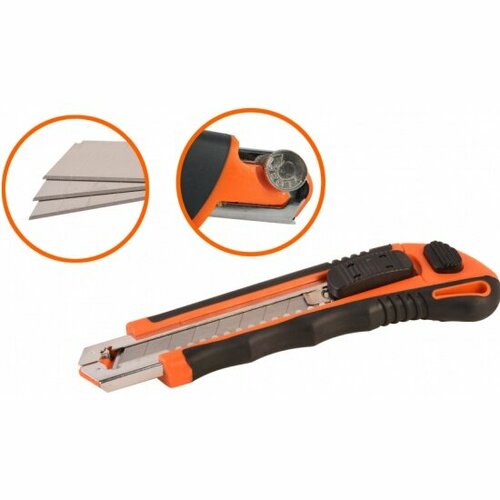 Нож STURM! 1076-08-05? 18мм, металл. направл, автоматич. смена лезвий, 3 лезвия