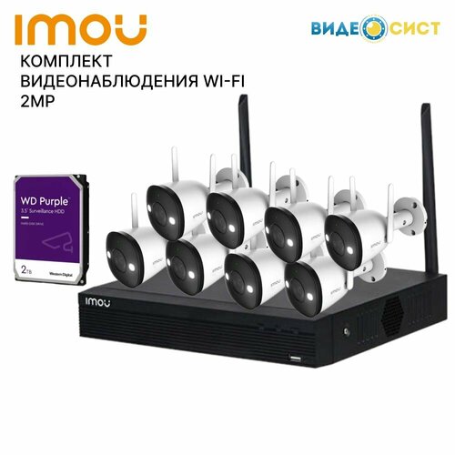 Комплект видеонаблюдения WI-FI 2MP IMOU 8 IP камер, видеорегистратор, встроенный микрофон, детекция движения, настраиваемые зоны, обнаружение человека, встроенный прожектор