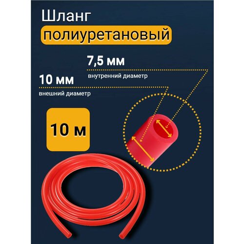 Трубка пневматическая, шланг полиуретановый, 10 мм 10 м, красный