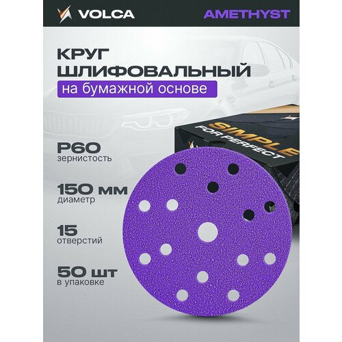 Круг шлифовальный 150 мм на липучке (набор 50 шт) P60, 15 отверстий, керамика / VOLCA AMETHYST