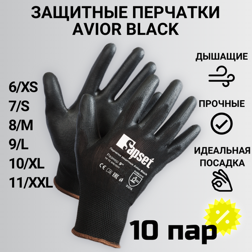 Перчатки рабочие Sapset Avior Black с покрытием из полиуретана, размер S/7 - 10 пар