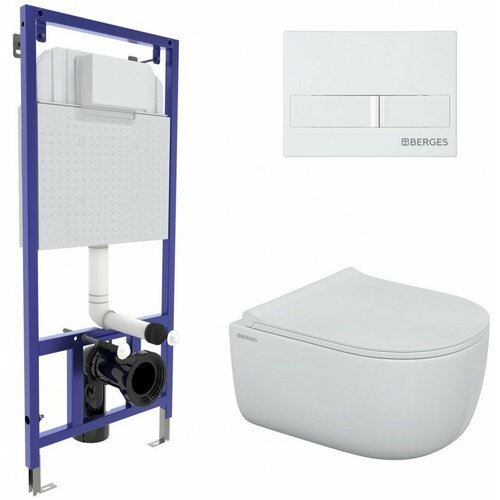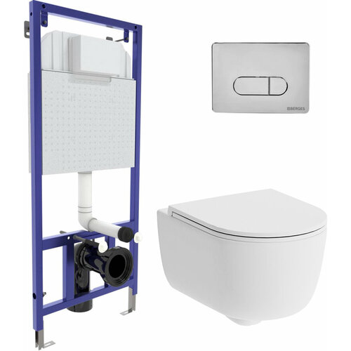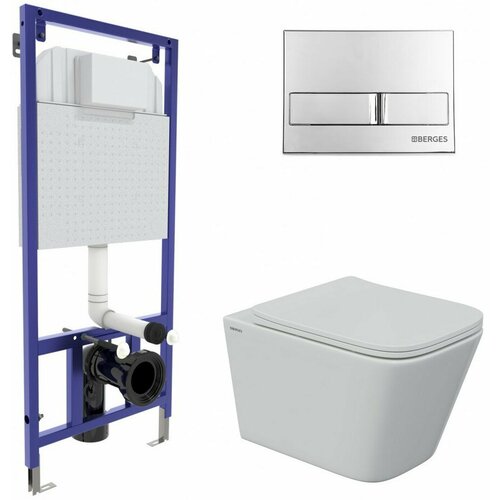 Berges Wasserhaus Комплект BERGES для монтажа подвесного унитаза GAMMA: инсталляция NOVUM525, кнопка S3, унитаз с сиденьем микролифт, быстросъем