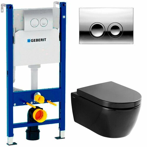 Инсталляция Geberit Duofix 458.124.21.1 + унитаз SSWW CT2038 black безободковый с сиденьем