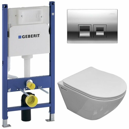 Инсталляция Geberit 111.153.00.1 + кнопка смыва Delta50 115.135.21.1 + унитаз Bloomix Trend 1203 безободковый с сиденьем