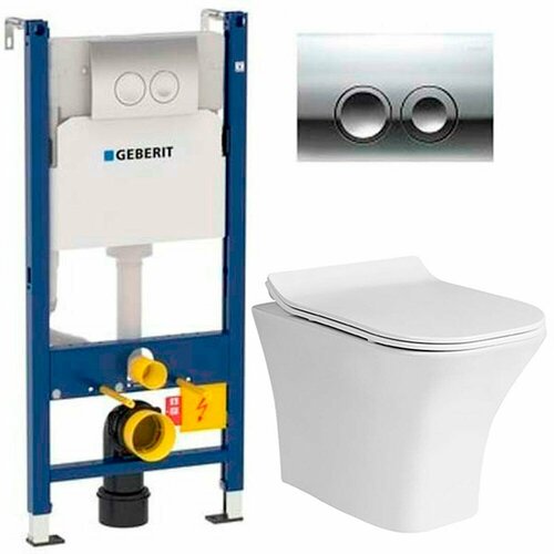Инсталляция Geberit 111.153.00.1 + кнопка смыва Delta50 115.135.21.1 + унитаз Bloomix Roland 1201 безободковый с сиденьем