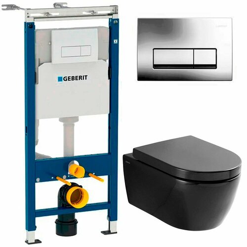 Инсталляция Geberit Duofix 458.125.21.1 + унитаз SSWW CT2038 black безободковый с сиденьем