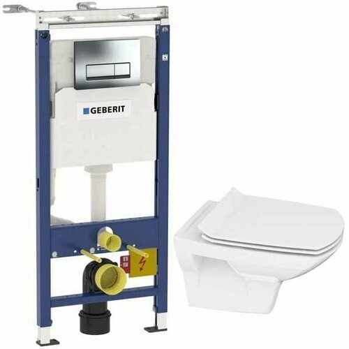 Инсталляция Geberit Duofix для подвесного унитаза, со смывным бачком Delta, смывная клавиша Delta01, хром глянец 458.149.21.1 серебристый, синий, хром, белый