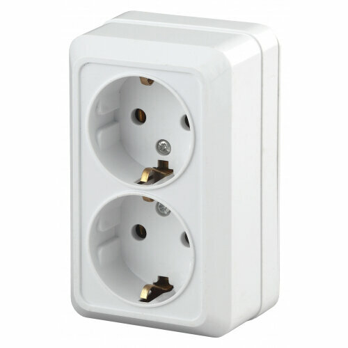 Розетка Intro Plano 1-205-01 с заземлением двойная 2X2P+E Schuko, 16А-250В, IP20, СУ, 1шт