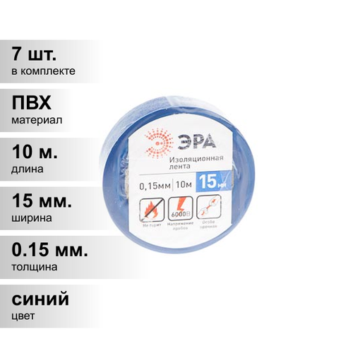 (7 шт.) Изолента ПВХ синяя 15мм 10м ЭРА