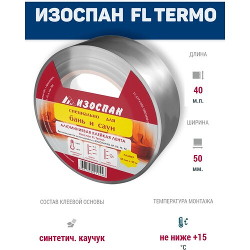 Алюминевая лента клейкая Изоспан FL termo, ширина 50мм. длина 40 м. п, для герметизация и скрепление нахлестов полотен