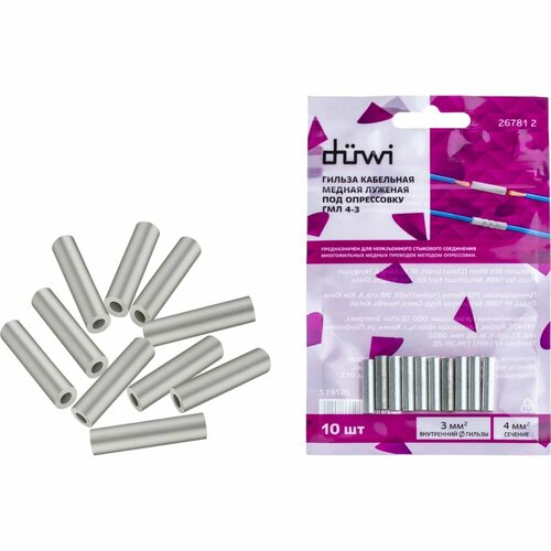 Медная луженая кабельная гильза под опрессовку duwi ГМЛ-4-3