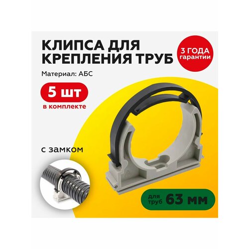 Клипса для крепления труб/гофры 63мм, с фиксатором (5шт)